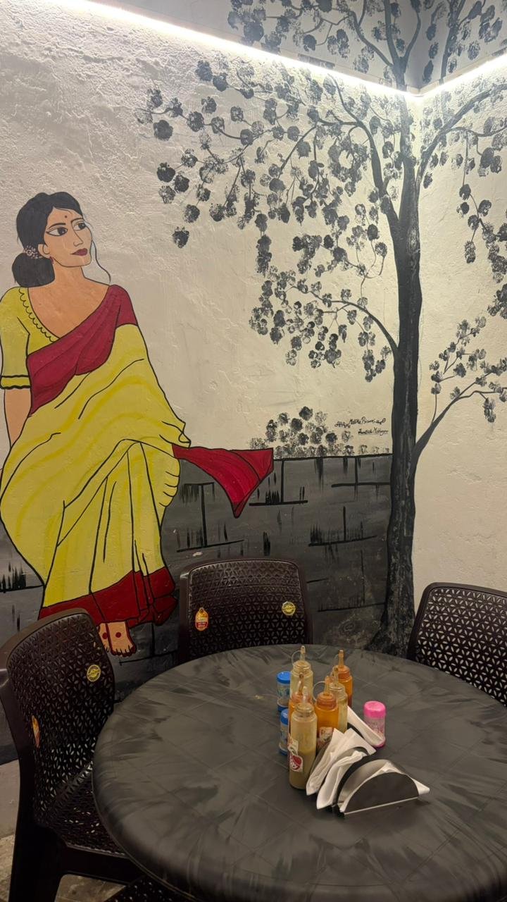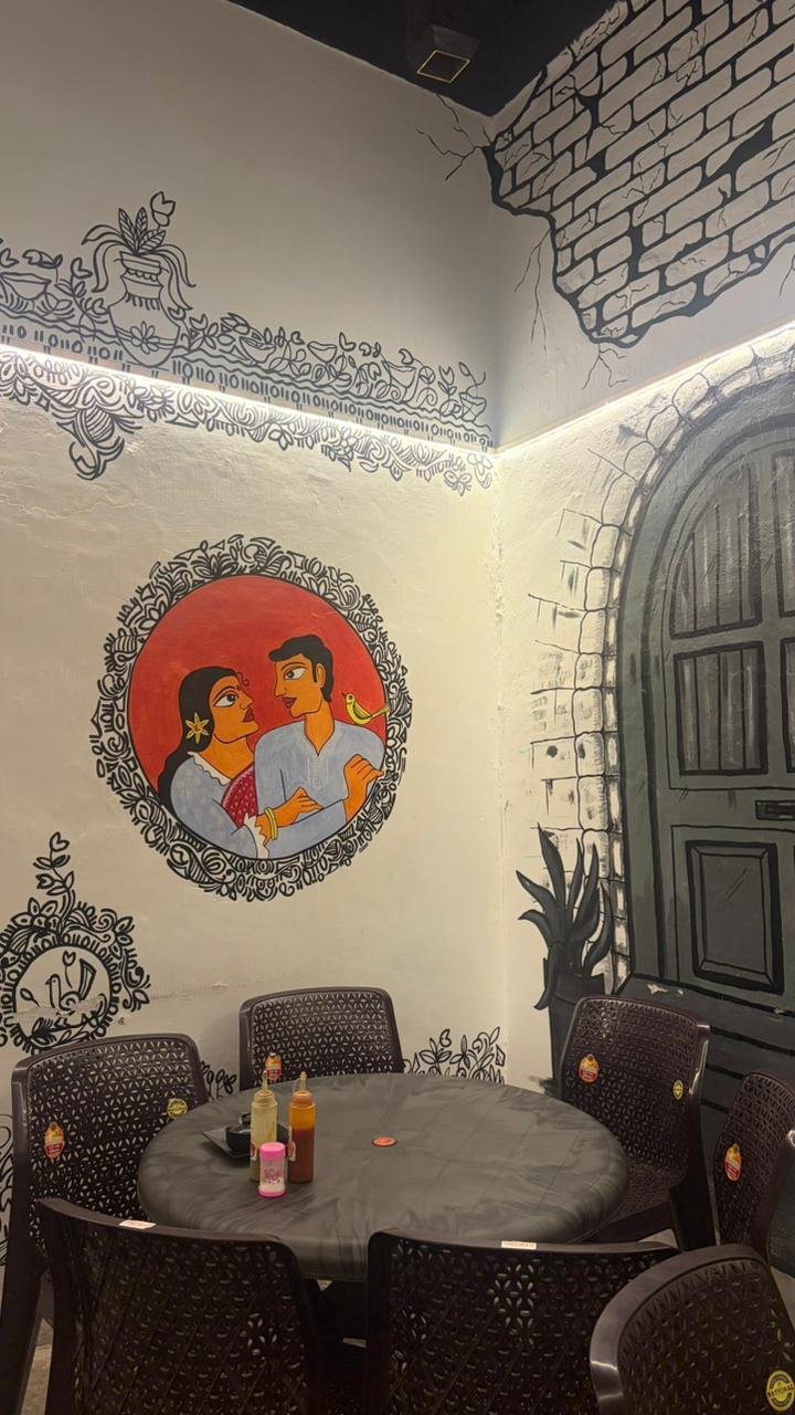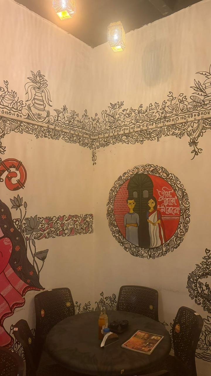 Experience the vibrant spirit of Kolkata with colorful interiors, artistic wall paintings, and a warm Bengali café atmosphere. Every corner reflects culture, tradition, and nostalgia.
